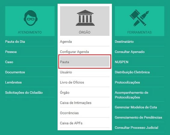A pauta do órgão é essencial para organizar o atendimento, pois é a partir dela que conseguiremos agendar o assistido, seja de forma presencial ou remota. Na pauta podemos criar os processos de atendimento do órgão, seja ele um processo único ou segmentado, ou seja, podemos criar uma pauta única, para atender todas as matérias atribuídas ao órgão, ou montar uma pauta segmentada por matéria e assuntos, de modo a organizar todo o processo de atendimento ao assisitido.