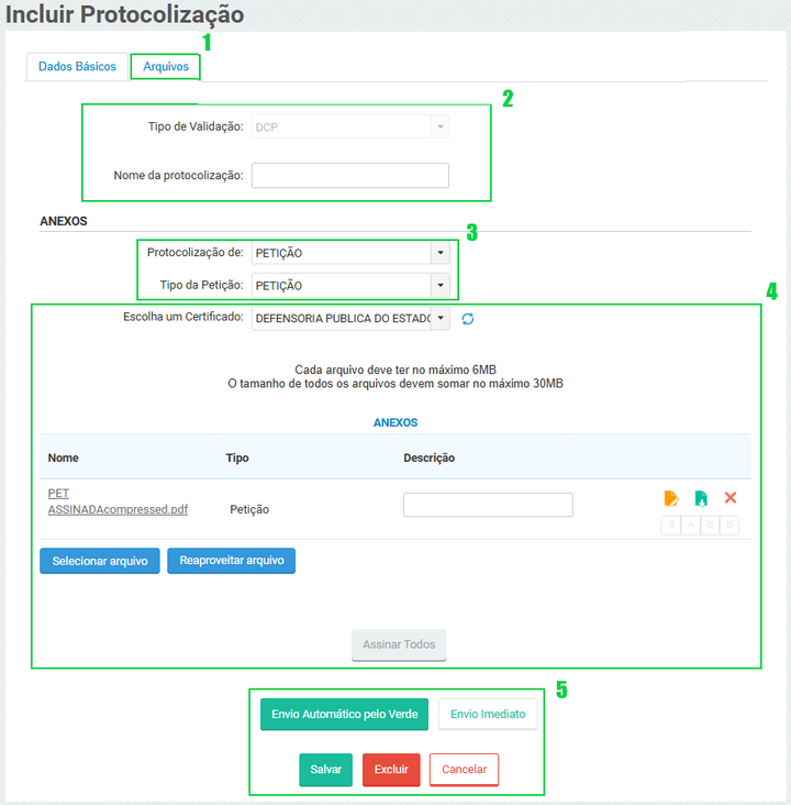 Envio Imediato: Assinar os arquivos da protocolização e enviar.
