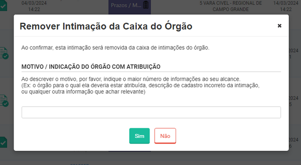 Se você possuir uma intimação que foi distribuída manualmente, pode clicar no botão correspondente para entender o motivo pelo qual ela foi enviada para sua caixa.